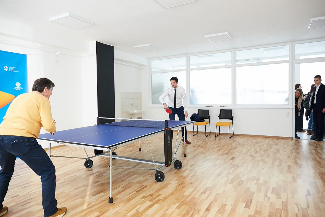 Priestor na cvičenie, hranie stolného tenisu, tancovanie alebo realizáciu vlastných tvorivých a športových aktivít.