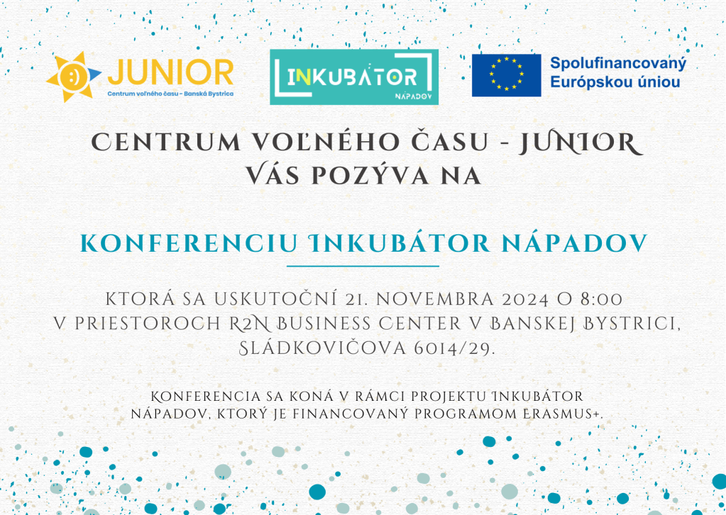 Srdečne vás pozývame na konferenciu Inkubátor nápadov, ktorá sa uskutoční dňa