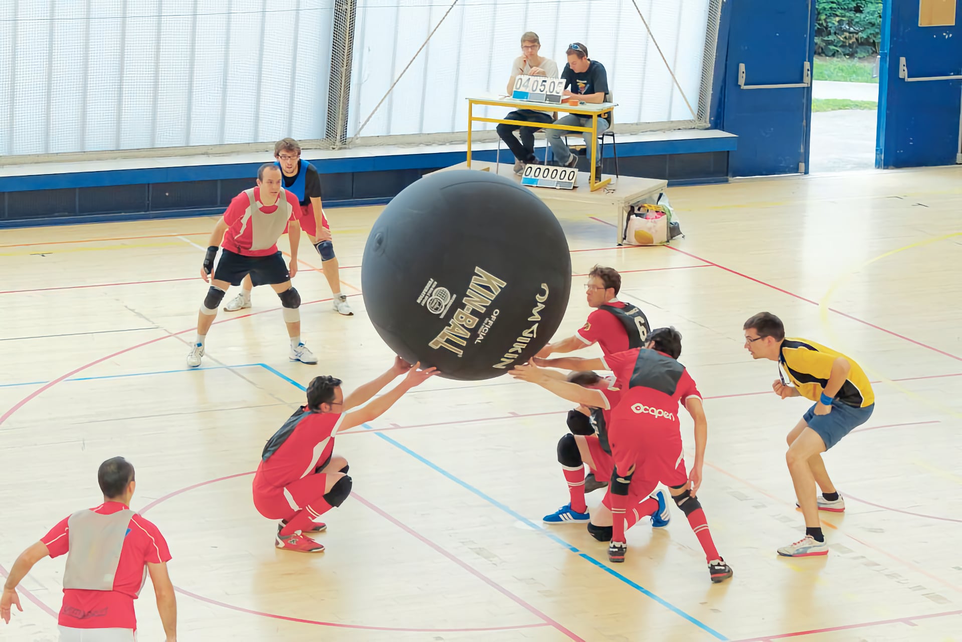 KINBALL – nová netradičná športová hra, kde proti sebe súťažia tri 4-členné družstvá.